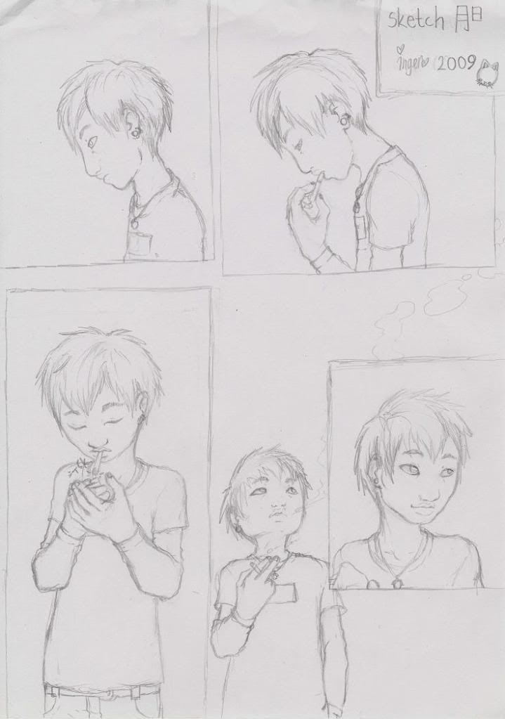 Denne sida er litt teit, for det virker som om han er deppa og så røyker han og da blir han glad eller no. Men det er ikke så mye poeng i akkurat hva som skjer. Husker ikke om jeg egentlig kutta ut at Akira røyker i det heletatt, siden jeg har glemt å putte det inn i hele midten av serien. Blir ofte sånn når man ikke røyker selv f^^;